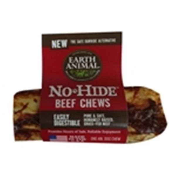 Earth Animal No Hide Beef Chews Dog Treats. 4" Earth Animal No Hide Beef Chews are formulated to provide dogs with an easily digestible chew that is safe and healthy! These chews are a great alternative to rawhide. and are made with real USA sourced humanely raised beef. It is highly nutritious and can help promote good dental hygiene by helping remove plaque and tarter from the teeth as your dog chews. It is produces in a USDA inspected human food facility in the USA!4 in. No Hide Beef Chews Dog Treats – 24 counter of 24 box. FeaturesMade & Sourced in the USA!Humanely Raised BeefPromotes Good Dental Health100% DigestibleAll Natural Dog ChewProvides Hours of Chewing Enjoymentpiece of 27 Counter BoxSpecificationsWeight: 0.45 lbs