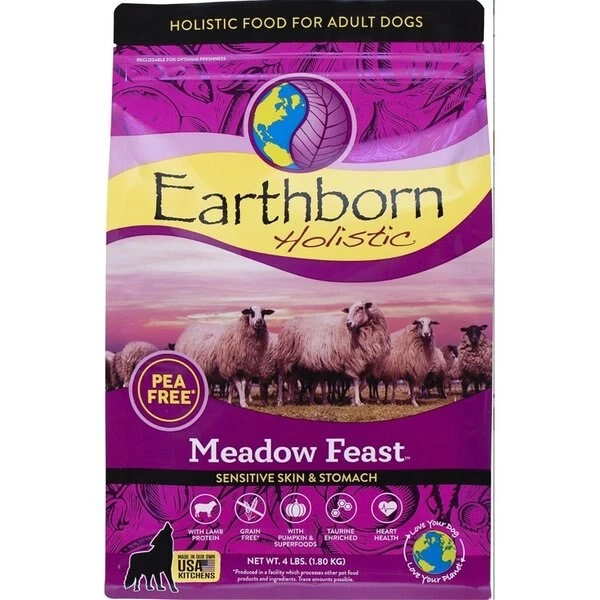 This unique Lamb recipe contains few protein and carbohydrate sources making it easy to manage dietary needs. This limited ingredient formula contains lamb protein as the only meat source making it a great alternative for dogs with sensitive stomachs.FeaturesMeadow Feast Grain Free Pea Free Dog FoodEnriched with added Taurine and Methionine to help support your dog's heart healthMade without peas. lentils. legumes. grain. gluten. or white potatoSuperfoods including pumpkin. flaxseed. blueberries. cranberries. apples. carrots. and spinach help support excellent digestion & nutrient absorptionProvides a great alternative for dogs with sensitive skin and stomachBPA-free. resealable. and 100% recyclable through the Earthborn ReBorn ProgramSpecificationsCapacity: 4 lbs