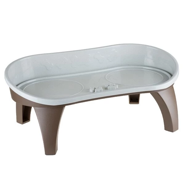 The Pet Adobe Elevated Pet Feeding Tray is designed to keep food and water mess off the floor, securely hold two pet bowls and elevate your pet's eating surface 8.5inches off the floor. The tray is dishwasher safe and easy to assemble and take apart. It can be used flat on the floor or elevated with the legs provided. The bottom of the tray and the bottom of the legs have non-skid pads to hold everything in place while your pets is eating. This versatile tray is good for indoor and outdoor use and has a small inset rim that when filled with water will keep ants from getting into the bowls. Bowls sold separately.