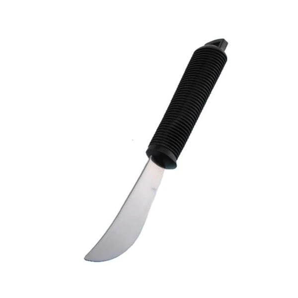 Rocker Knife is uniquely designed for easy cutting utilizing a rocking motion for people with limited strength and movement. Less sharp blade is safe for houshold use. Includes soft. thick comfort handle that is easy to hold. Dishwasher safe