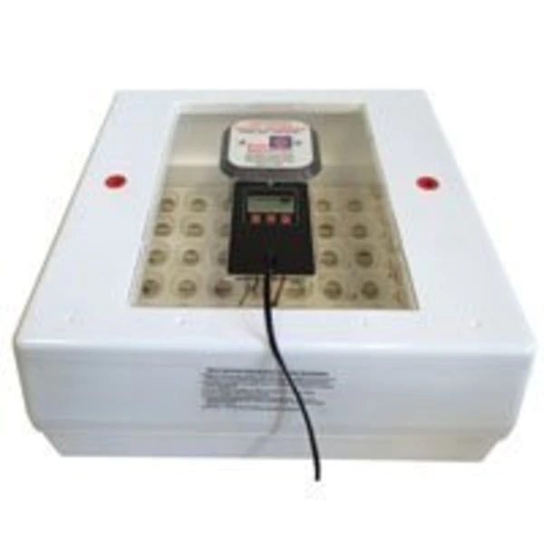 Pro Series Digital incubator with auto egg turner. All-in-one includes circulating air fan, automatic egg turner and egg candler. Digital readout shows temperature, humidity and days to hatch. Pre-set at 100 deg for optimal hatching temperature. Hard plastic outer shell protects the incubator. Large size accommodates a variety of eggs. Great for schools, hobbyists or breeders.