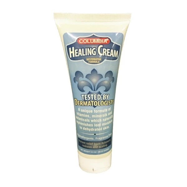 Columbia Healing Cream is made of a unique formula of vitamins, minerals and botanicals which naturally replenishes lost moisture to dehydrated skin. Helps with instant relief from itchiness, redness and scaling. Hypoallergenic and fragrance free.