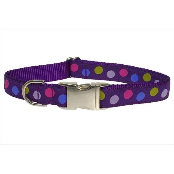 Our high quality adjustable collars with gorgeous and light weight Aluminum buckles have beautiful and unique patterns. The collar is soft durable and washable and is made of sturdy nylon webbing.FeaturesType – Dog CollarColor – Purple/MultiDesign – DotSize – Large 1 in. wide Adjusts 18-28 in.