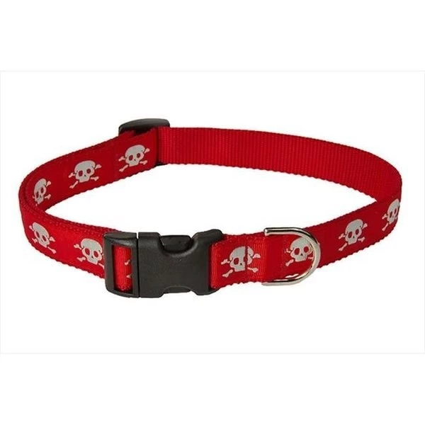 Our high quality adjustable collars with quick-release buckles. The collar is reflective with skull print will keep you and your dog safe when walking or running at night.FeaturesType – Dog CollarColor – RedDesign – Reflective SkullSize – Medium 3/4 in. wide Adjusts 13-20 in.