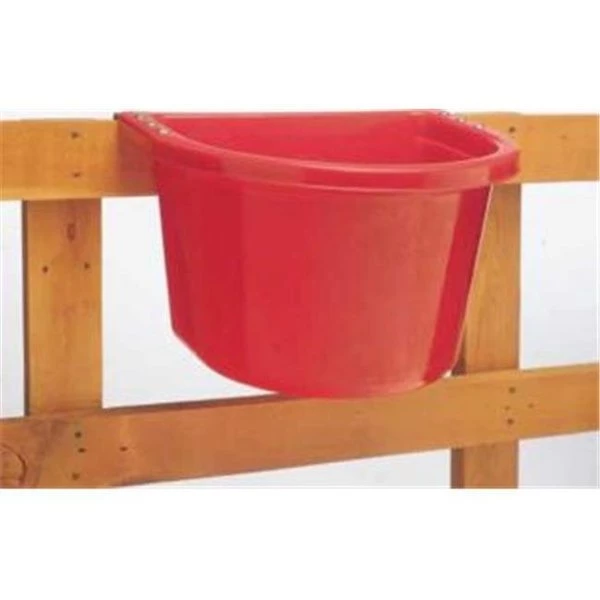 Innovative and practical over the fence and on the wall feeder with multi adjustable heavy duty galvanized L-shape brackets.Adaptable to most stable feeding needs.Twenty (20) quart capacity with decorative medallion and etched horsehead.Heavy-duty design and construction.Capacity markings in gallons and liters.Color: Red.Size: 20 Quart.Dimensions: 14" x 17" Top x 11" Height.