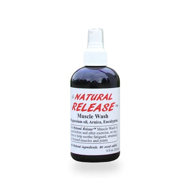 Natural Release Muscle Wash is not another menthol-based product. You will not smell like a gym. It is all natural and unique. It is water-based, not oily. This does not generate heat and can be used under saddle and wraps – and under therapeutic blankets. Used for muscle soreness and cramps, tendon strain, joint aches, swelling due to muscle stress. Helps relieve back/shoulder/hip/knee aches.NOTE: Be sure to use enough. The spray must get to the skin. Spray on the coat and rub in. Spray a bit more and do one more rub. Wash your hands. You can use anywhere on the horse, but do not allow it to get in the eyes.
