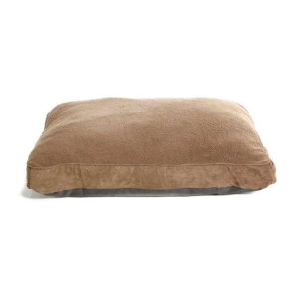These Deluxe Pillows are ideal for pets who like to sprawl and snooze the day away. Our gusseted design maximizes loft while the soft sleep surfaces provide hours of snuggly comfort. Under the cover. all filling materials are contained in a non-woven liner sleeve which is conveniently zippered for easy refill as needed. This pillow is stuffed with insulating polyester fiber fill mixed with deodorizing cedar shavings.FeaturesSnuggly-soft terry fleece sleep surface; lustrous dyed-to-match suedine gusset and pipingGusseted pillow design for extra loft and comfortWater-resistant polycanvas base protects floorsZippered. removable cover for frequent washing to keep the bed looking and smelling freshConvenient zippered liner for easy refillColor – Espresso.Size – LargeDimension – 36 x 27 x 3 in.Item weight – 5 lbs.