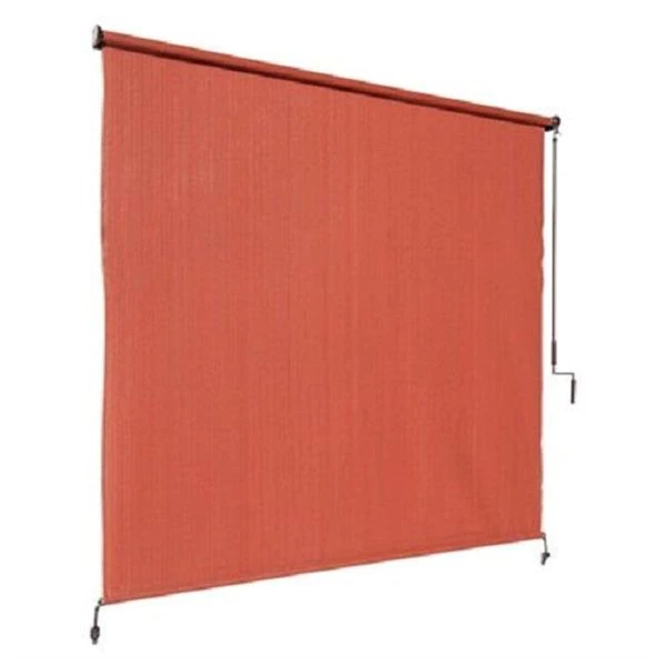 FeaturesUnique knitted 'breathable' fabricA smooth action roller clutch mechanismStainless steel 'tie-downs'Up to 90% UV block protection from damaging effects of the sunBreathable' fabric allows air flow. substantially reducing temperatures and energy costsWeather resistant fabric and components resist fading. mold. and mildewLight filtering knit reduces glare without darkening a room's interiorRecyclable fabric and head railColor – TerracottaSize – 8 x 6 ft.Dimension – 96 L x 72 W x 0.03 H in.