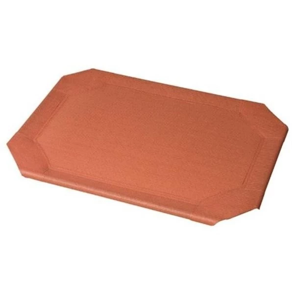 Slides easily onto frame Coolaroo Pet Bed.Knitted polyester fabric.UV-treated to resist fading.Water-resistant and quick-drying.Flea- and mite-resistant.Size: Small.Color: Terracotta.Dimensions: 27.5" L x 21.6" W.