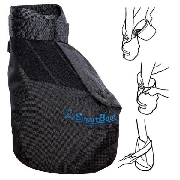 Soaking horse boot smart soaking system here is a soaking boot the is so easy to use you will wonder why someone had not thought of it before. No more buckets. The easy open design offers a front entry for your horses leg. then hook and loop the boot shut. Made of ballistic nylon which make the boot durable. There is a comfort disc in the bottom interior that protects the horses shoes. You will receive with your soaking boot four oxi-clean tablets to get your horse hoof started to healing. Please note that you will receive only one boot. FeaturesSoaking medicine boot