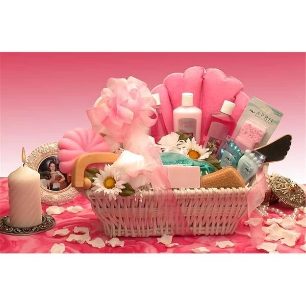 The Ultimate Spa gift basket gifts your lady with everything she needs for a luxurious bath and spa treat! This white wicker bath tray is filled with raspberry scented treats to spoil her from head to toe. She'll enjoy her candle lit bath and spend these heavenly moments thinking of the special someone who sent her the Ultimate Spa gift basket.Wooden Back Massager.Wooden Bath & Pedicure Brush.Wood Pedicure Groomer.Cooling Foot Wash.Soothing Peppermint Foot Lotion.Gel Hot or Cold Eye Mask.Terry Cloth Bath Slippers.Terry Cloth Bath Pillow.Bath Loofah.2 – 3" Pillar Candles.8 oz. Sugar Pea Moisturizing Bath Gel.8 oz. Sugar Pea Moisturizing Foaming Bubble Bath.8 oz. Sugar Pea Moisturizing Body Lotion.Terry Cloth Bath & Shower Make-Up/Head Band.White Wicker Bath Tray.Size: 12"x7"x7".