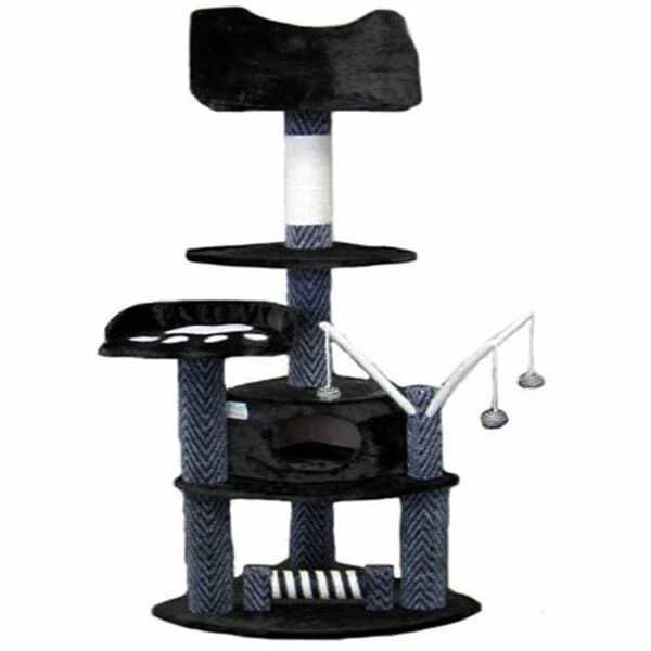 Color: Grey & BlackOverall Size : 26"W x 20"L x 62"HSize of Condo : 16"W x 13"L x 10"HTop Bed: 15" x 15"Hanging Balls and Rope included(Front) Bottom post can turnThe positions of the top two beds and rope with balls are interchangeableCovering Material : Only the posts is carpet. rest are faux furBoard Material : WoodEasy to assemble with step by step instruction and tools included