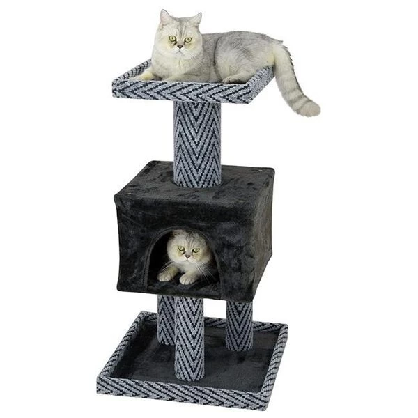 Comfort and entertainment for your cat needs a space of their own to rest and play. They can take a Nap or play around as much as they want this cat tree lets your cat be more active. Extra Large posts the new extra large posts add more fun and stability. The added rope allows for more than one way for your cat to have fun. so your cat never runs out of things to do. FeaturesFun PlayhouseEasy to assemble with step by step instruction and tools includedSpecificationsSize: 37.25 in.Top Perch Size: 15.5 x 15.5 in.Huge Posts Size: 5.5" DiaBoard Covering Material: Carpet and Faux FurBoard Material: WoodCondo House Dimension: 11.5 x 16 x 16 in.Overall Dimension: 37.25 x 20 x 20 in.Weight: 24 lbs