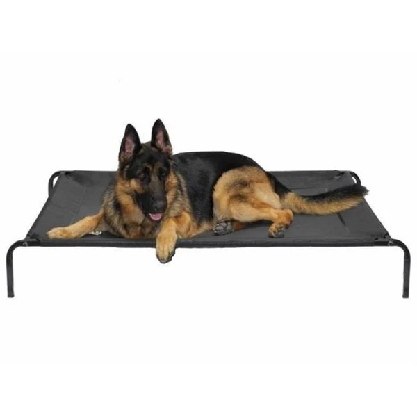 FeaturesProduct Type – Elevated Cooling Pet Cot Bed.Mesh fabric allows for great ventilation during use.Easy assembly. easy to maintain. is light weight and easy to store.Dimension: 46.5 L x 28 W x 7 H in.Max Weight – 150 pounds.Perfect for outdoor use. to keep your pets off of the hot ground.Powder coated steel frame for extra durability and easy cleaning.