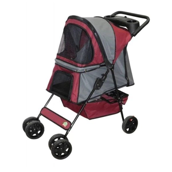 FeaturesColor: Maroon/SilverStroller Dimensions : 35 L x 19.75 W x 36 H in.Interior Dimensions : 23 L x 14 W x 23 H in.Pets up to 45 lbsFrame fold-down easily for storage or travel. open and fold in 10 seconds without using toolsLarge storage basket and cup holders to keep toys. treat . and water bottles handyLock brake system on the rear wheel. so you can lock the stroller when parkedDurable mesh provides airflow. visibility. and keeps insects outPad and safely leash included