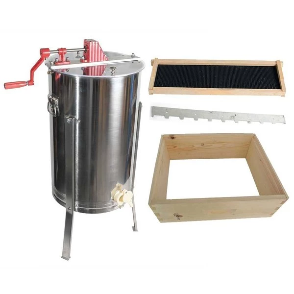 This kit includes a Goodland Bee Supply® food grade 304 SS two frame manual honey extractor which is a must have for the beekeeper with 1 – 10 hives. The 16 gauge stainless steel tank with sealed bearings and steel gears make this a professional, durable 2 frame honey extractor. Two deep, medium, or shallow frames can be extracted at once. Included with the extractor is a 3 piece leg stand making offloading your honey hassle free.