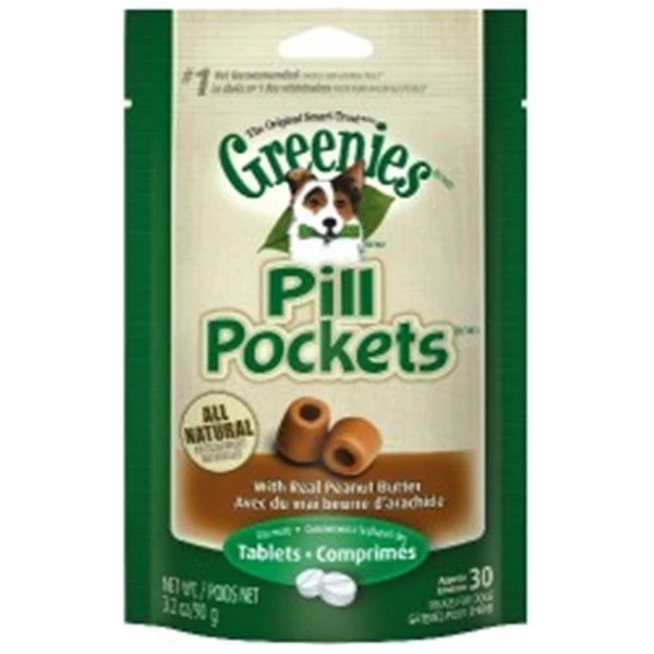 Canine Treats are 100% all natural tasty treats with a built-in pouch – ideal for hiding a tablet capsule or liquid medication – so that most dogs dont even notice theres medicine inside. Theyre the #1 veterinarian-recommended choice for giving pillsFeaturesPack Of 30Flavor – Peanut ButterItem weight – 3.2 oz.IngredientsReal Peanut Butter – Rehydrated chicken glycerin wheat flour wheat gluten peanut butter dried corn syrup dried cultured skim milk peanut oil (preserved with mixed tocopherols) vegetable oil natural flavors sodium bisulfate xanthan gum preserved with mixed tocopherols rosemary extract.