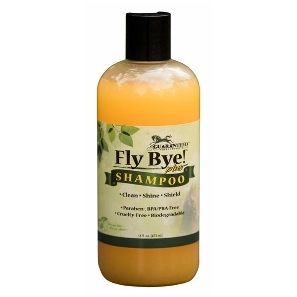 Fly Bye! Plus Shampoo is formulated for a radiant shine that is sure to wow the crowd! Enhances your horse's natural beauty for deep cleaning, conditioning and finishing with a brilliant, non-slick shine. Fly Bye Plus Shampoo will shield your horse against nature's most pesky insects! Contains moisturizing coconut and soothing aloe. Also includes the proprietary Fly Bye! Plus formula as a key ingredient.Benefits:Moisturizes & conditionsContains Fly Bye! Plus formula for ultimate protection against flies, -mosquitoes and gnatsLuxurious shineDeep cleansNatural ingredientsMADE IN AMERICADue to Proposition 65 requirements, this product is not available for sale in California.