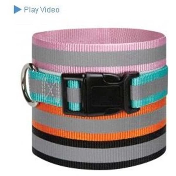 These super-strong Guardian Gear® Reflective Dog Collars have a full-length reflective tape that lights up brightly in headlights or flashlights.Super-strong Guardian Gear® Reflective Dog Collars offer full-length reflective taping for added safety during those night time walks.FeaturesCollars are adjustable and feature a contoured. plastic buckleBright colors are stylish and safeAll Guardian Gear Collars are guaranteed for lifeEach Guardian Gear® Reflective Dog Collar includes a hangtag for easy retail display Collars coordinate with our Guardian Gear® Reflective Leads. Material – Durable nylon with full-length reflective tape;; Plastic bucklesColor – BlackCollar Size – 14-20 in.Sizing GuideTo determine the proper size. measure the circumference of pet's neck and add 2 in.5/8 in. width is best for puppies and small dogs5/8 in. Collar Adjusts to Fit Necks 14 – 20 in.