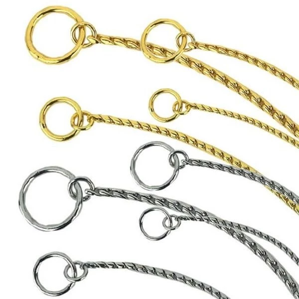 Beautiful Guardian Gear Medium Gold Snake Chain collars add a touch of class at the dog show.Features a hexagonal link designCoated in goldAll Guardian Gear Collars are guaranteed for lifeMaterial – Gold-coated brassColor – ChromeSize – 24 in.Sizing GuideFor choke collars. measure the circumference of pet’s neck and add 2 – 3 in.
