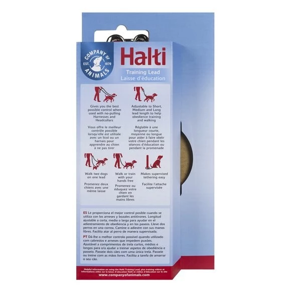 Themultifunctional Halti Training Lead was designed by Dr Roger Mugford to provide optimum control and to simplify training with headcollars or harnesses. This lead enables you to control guide and tether a dog in everyday situations. It is made from soft padded material which makes it very comfortable to hold and with 8 uses it is a versatile lead for all your training needs.