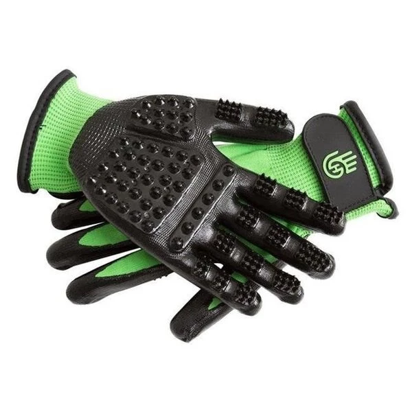 FeaturesOutstanding shedder. and hair does not stick to the glovesNon-slip. flexible grip handle lead ropes. leashes. shampoo bottles and more without taking your gloves offBetter distribution of natural oils for healthy skin and coatMassages and stimulates circulationResistant to oil and chemicals while Hypoallergenic. no latexTactile touch is ideal for sensitive areas;; apply as little or as much pressure as neededProtect your hands and nails while effectively grooming and bathingHandsOn Gloves completely eliminate the need for curry combs. bathing mitts and sweat scrapersSpecificationsColor: BlackSize: Small