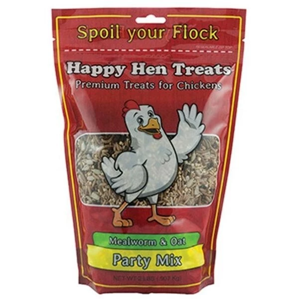 FeaturesMealworm & Oats Party Mix.Contains Natural & Healthy Ingredients That Chickens Love To Eat.100% Natural.Perfect For Training Or Taming Chickens. Oat Oats. Peanuts. Sunflower Kernels. Raisins & Dried Mealworms.Allergen Information Product Is Produced In Facilities That Use Peanuts. Tree Nuts. Wheat. Egg. Milk Products & Soy Thus May Contain 1 Or More Of These Ingredients.Dimension – 4 x 5 x 11.5 in.Item Weight – 2 lbs.