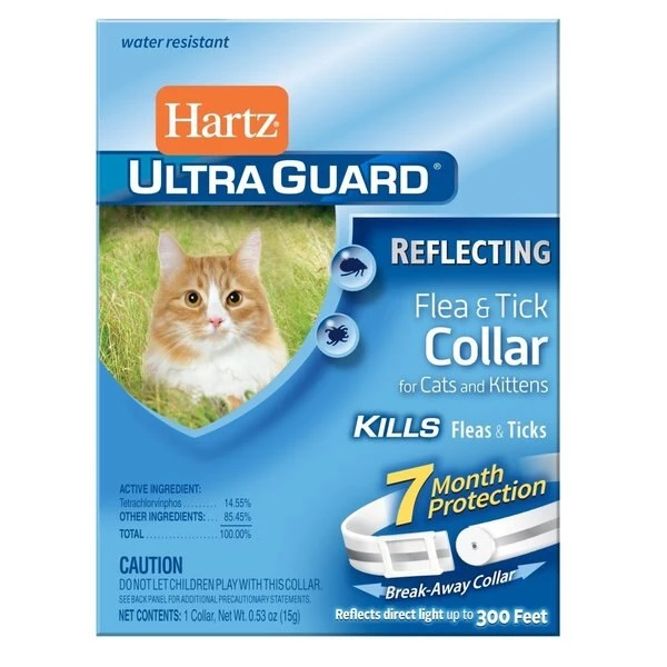 Kills and repels fleas and ticks for 7 months. Can be worn simultaneously with your cat's regular collar.
