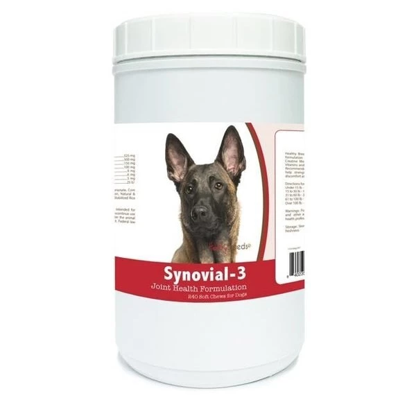 Synovial-3 soft chews is a comprehensive joint health formulation for dogs combining Glucosamine. MSM. Creative Monohydrate. Omega-3 fatty acids. Antioxidants. Vitamins and Minerals in a moist. tasty. easy-to-chew treat dogs love! Formulated for improved joint health. to relieve inflammation and for enhanced energy. May help alleviate the discomfort associated with normal daily exercise and activity.FeaturesComprehensive nutritional supplement for superior joint health in dogsTasty soft chew fortified with antioxidants and Omega-3 Fatty AcidsSupports joint function and flexibilityHelps strengthen joint cartilage120 CountActive IngredientsGlucosamine HCl (Shellfish) .. 525 mgMSM (Methylsulfonylmethane).. 500 mgPerna Canaliculus ..150 mgCreatine Monohydrate.. 100 mgEicosapentaenoic Acid (EPA) .. 9 mgDocosahexaenoic Acid (DHA) ..6 mgAscorbic Acid (Vitamin C).. 5 mgdl-Alpha Tocopherol Acetate (Vitamin E) ..25 IUDirections for UseUnder 15 lb – 1/2 soft chew daily15 to 30 lb – 1 soft chew daily31 to 60 lb – 2 soft chews daily61 to 100 lb – 3 soft chews dailyOver 100 lb – 4 soft chews dailyWarningsFor animal use only. Keep out of reach of children and other animals. In case of accidental overdose. contact a health professional immediatelyStorageStore tightly closed at room temperature to ensure freshnessSpecificationsWeight: 17.2 lbs