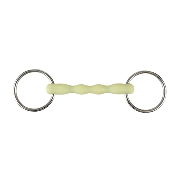 Apple Ring Bit with flexible shaped apple flavored mouth and 65mm stainless steel rings.