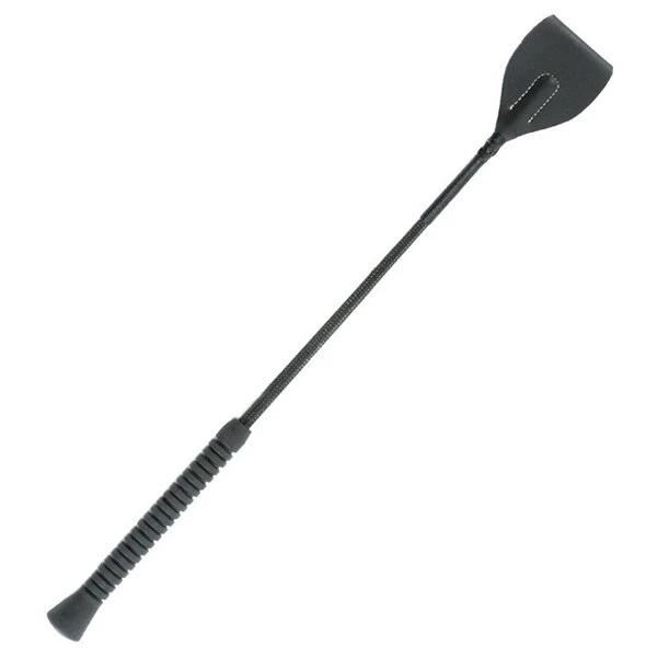 This English style Bat has molded rubber ribbed grip handle with polyethylene covered fiberglass shaft and wide synthetic flap. Available in black only.