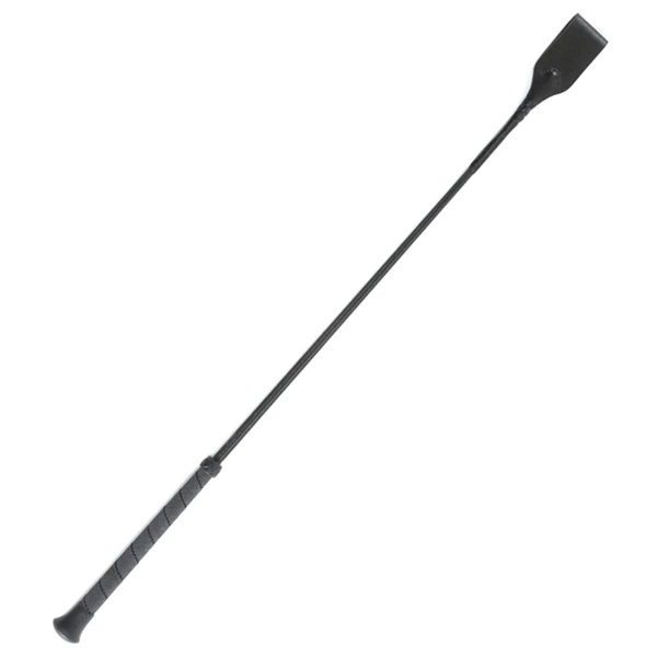 This English style Bat has a non slip rubber grip handle with mushroom cap, nylon wrapped fiberglass shaft and leather flap.