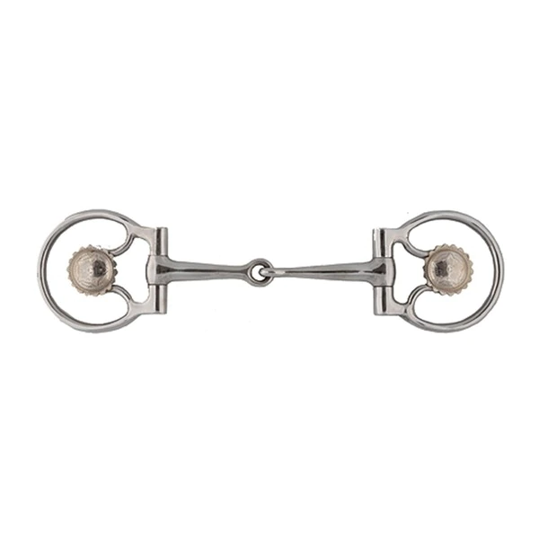 Stainless Steel Concho Snaffle Bit with offset 2-1/2" 65mm Dee Rings with 1-1/2" German Silver Engraved concho and a 5" jointed mouth with thickness of 13mm.