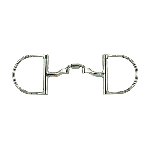 Stainless steel Bit with looped dee rings and a 5" jointed copper inlaid ported barrel mouth.