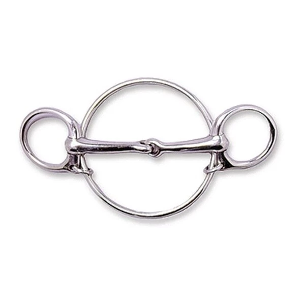 Stainless steel Dexter Ring Racing Bit features a jointed mouth and 2" rings.