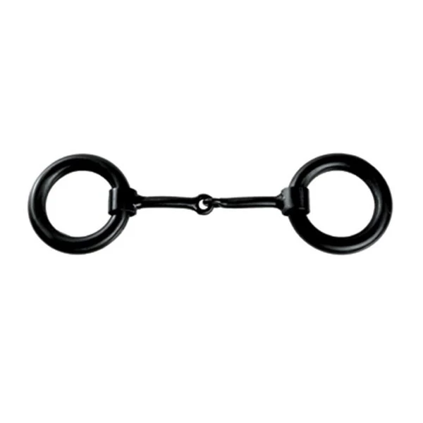 Black steel Donut Heavy Ring Snaffle Bit has a 5" jointed mouth with 60mm 1.75 lb. heavy rings.