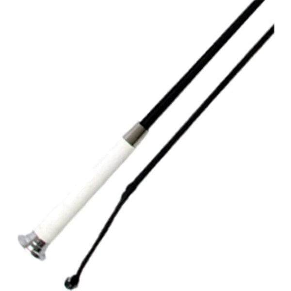 White grip handle with chrome mushroom cap, and nylon wrapped fiberglass shaft.