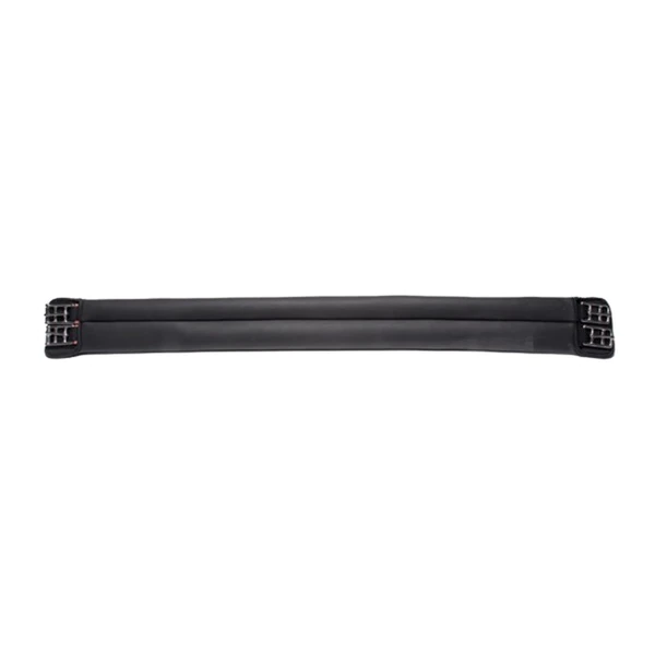 English Girth is made of quality neoprene that lubricates during use to prevent chafing, galls and sores. Stainless steel roller buckle with elastic on one end and standard stainless steel buckles on the other end.
