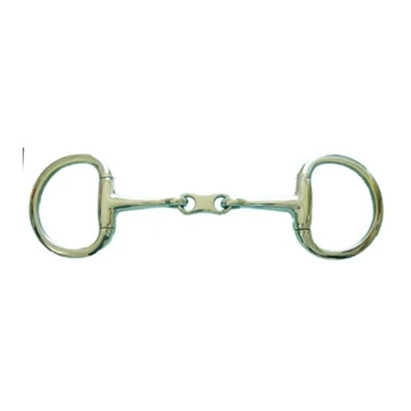 Stainless steel Eggbutt Snaffle Bit with 65mm flat rings and a double jointed French mouth piece with mouth thickness of 14mm.
