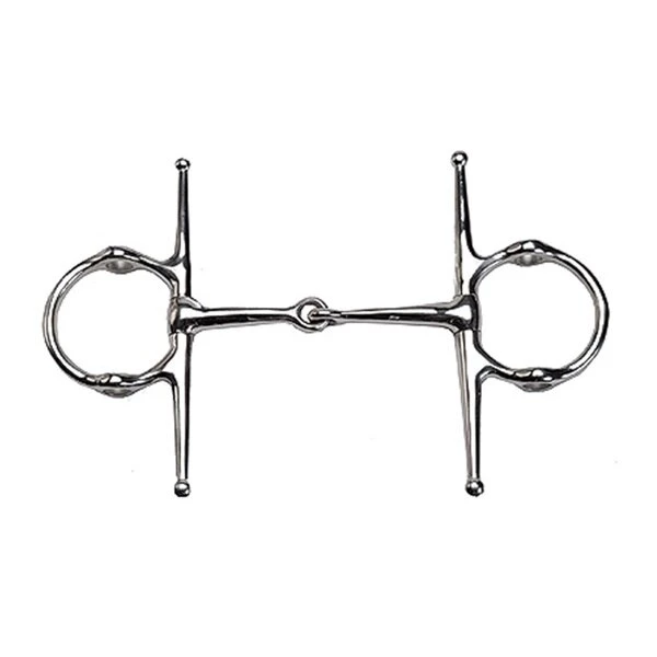 Stainless steel Full Cheek Gag Snaffle Bit has 7" cheeks with rings with holes and a 5" jointed mouth with thickness of 13mm.