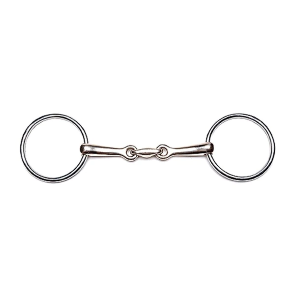 Bit has double jointed horizontal elliptical link mouth with thickness of 14mm and ring size of 65mm.