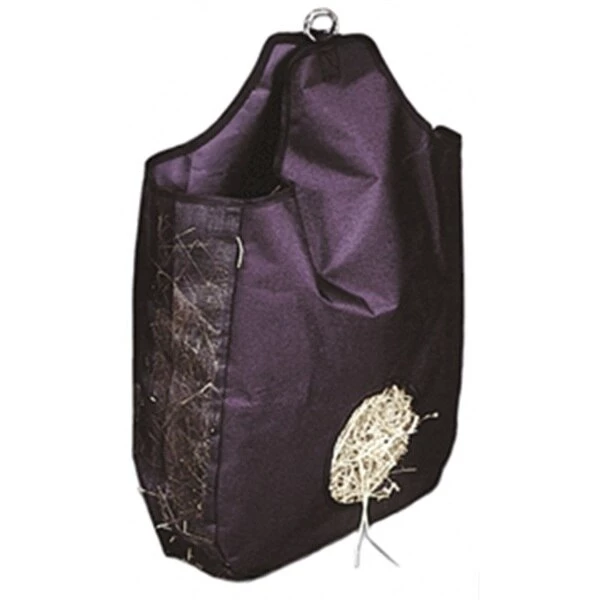 This uniquely designed hay bag, made of 600 denier nylon features a mesh edge which allows ventilation to prevent molding.