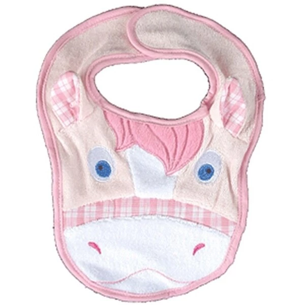 Horsey Baby Bib made from 85% cotton and 15% polyester.
