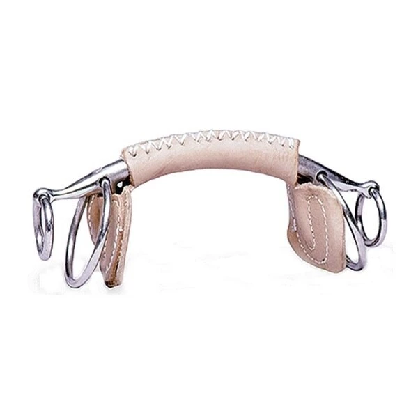 Double extension is for horses that lock on the driving line. Attach driving lines on the outside ring or inside ring (or both rings depending on how much they are on a line).Stainless Steel 5" mullen leather covered mouth with double side guards and 2-1/2" rings.