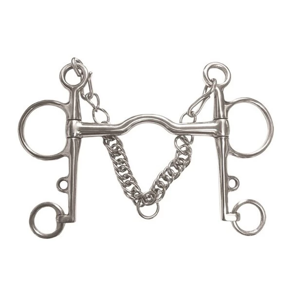 Stainless steel Low Port Pelham Bit has a 5" mouth and 6" cheeks.