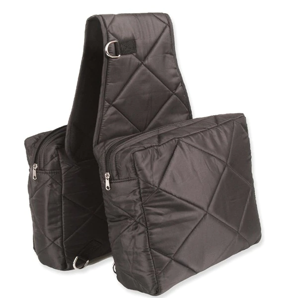 Heavy duty Quilted Cooler Saddle Bag is constructed of 210 denier nylon outer shell with a 10mm foam and cloth lining. Bag is lined to prevent leakage and is ideal for easy care. Durable zipper closure ensures easy access. Measures 12-1/2" x 13" x 3-3/34".