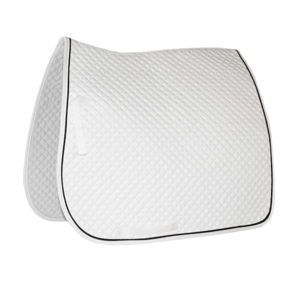 Excellent Quilted Dressage Pad with 1" diamond quilt 6 oz. cotton outershell. 8mm foam and 240 gm polyfil cushion provides maximum comfort. Indexed body color, piping color and trim color. 25" X 44". Monogram available.
