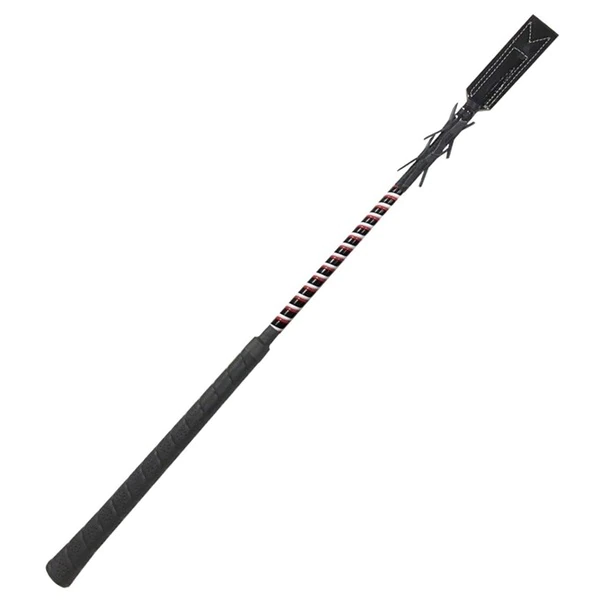 Racing Bat with golf style grip and fiberglass shaft with thick leather rectangle flapper and feathers.