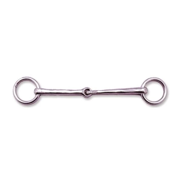 Stainless Steel Bit with 1" rings and 4-3/4" jointed mouth. Typically used together with a half cheek snaffle driving bit.