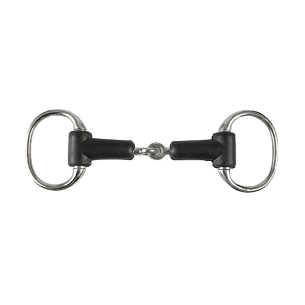 Eggbutt Snaffle Bit with stainless steel 70mm rings and a rubber covered jointed mouth with mouth thickness of 21mm.